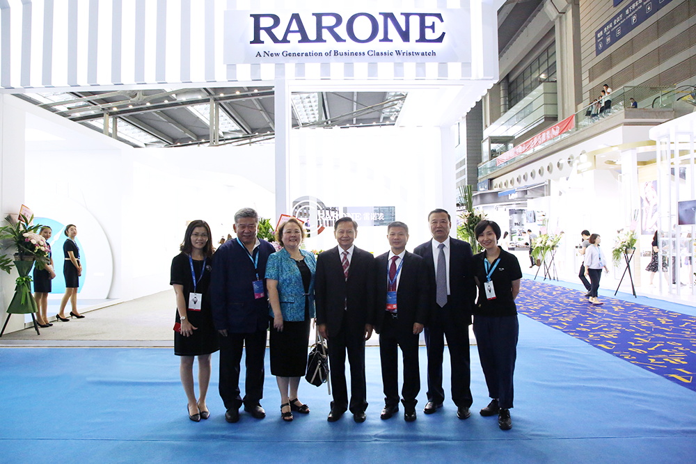 中國(guó)輕工聯(lián)合會(huì)張崇和會(huì)長(zhǎng);中國(guó)鐘表協(xié)會(huì)張宏光副理事長(zhǎng);中國(guó)鐘表協(xié)會(huì)丁言行副理事長(zhǎng)一行蒞臨雷諾表展館參觀指導(dǎo)