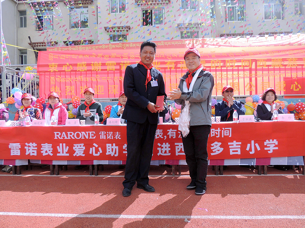 雷諾表業(yè)總經(jīng)理詹江洲先生表示,雷諾表業(yè)今天所盡的綿薄之力比起工作在這里的援藏干部,在這里教書(shū)育人的老師們是微不足道的,堅(jiān)守在邊疆無(wú)私奉獻(xiàn)的人更讓人感動(dòng)和敬佩!今天我們的付出也僅僅是杯水車薪微不足道,我們只是希望通過(guò)這樣的助學(xué)活動(dòng),能夠在社會(huì)上倡導(dǎo)這樣的愛(ài)心風(fēng)尚。通過(guò)這樣的助學(xué)活動(dòng),努力承擔(dān)對(duì)社會(huì)的責(zé)任,并始終把這種責(zé)任看作是企業(yè)發(fā)展的強(qiáng)大動(dòng)力。我們時(shí)刻懷著一顆感恩之心,積極回報(bào)社會(huì),我們深知只有企業(yè)不斷地發(fā)展,才能為社會(huì)做出更大的貢獻(xiàn)。