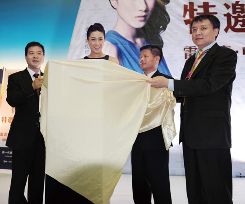 當天,鐘嘉欣現身雷諾“古典話筒”展館,引爆現場高潮氣氛,成為整個展覽的焦點,秒殺不少菲林。下午5時,鐘嘉欣佩戴雷諾贈送的手表,與雷諾表業董事長詹西洲、總經理詹江洲、《中國經營報》社長韓曦晨共同揭開“藝術之旅”系列新表款的神秘面紗,正式對外發布這一全新系列的新表款。