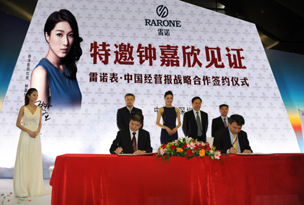 6月29日,雷諾表與《中國經營報》簽訂戰(zhàn)略合作協(xié)議,首次成就鐘表品牌與商務媒體的強勢結合。同時盛邀香港當紅影星鐘嘉欣出席儀式,共同見證雷諾表又一品牌推廣戰(zhàn)略盛事。